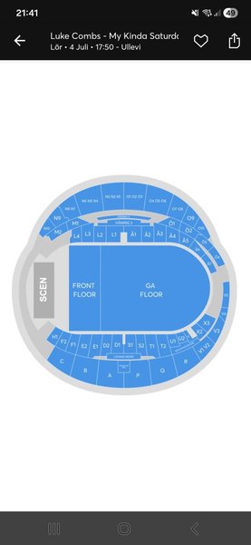 Två sittplatser bredvid varandra på sektion L4. Överföring via Ticketmaster då biljetterna inte går att sälja via deras app...än iaf.