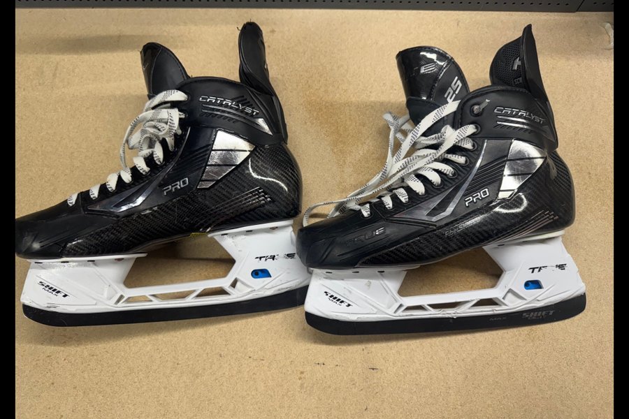 Ett par True Catalyst Pro custom skridskor. Storlek 9.5. Svarta extra skenor följer med