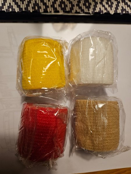 Grabben vill sälja 4 rullar grepp som han haft till hockeyklubborna. Dessa är nya och oanvända. Ca 5 cm bredd och 5 m lång. Passar annat som också behöver grepp. Samfraktar gärna.