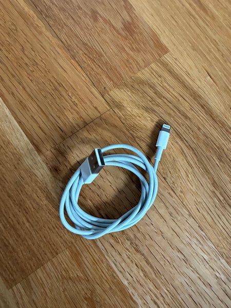 Laddkabel med USB-A i ena änden och Lightning-kontakt i den andra. Fungerar som den ska.