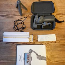 Inkluderar Osmo Mobile 3, förvaringsväska, förvaringspåse, stativ och orginalförpackning.