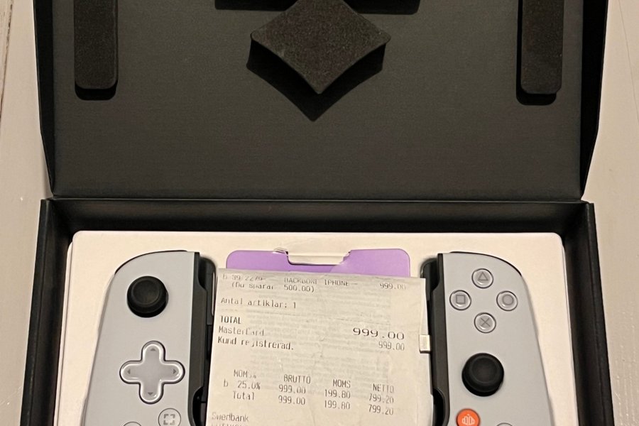 Tja! Säljer ett knappt använt Backbone till Iphone med lightning uttag. Kvitto ingår och produkten köptes från Clas Ohlson för 999kr.