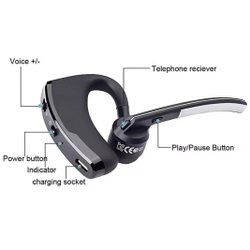 Trådlösa Bluetooth hörlurar med Caller ID. Designad för att passa örats form och kan roteras 180 grader för att passa både vänster och höger öra.