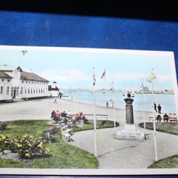 Vykort med motiv av en sjöbod med en brygga och en badplats. Kortet är i svartvitt och föreställer en naturskön miljö vid vattnet.