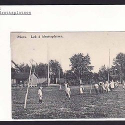Mora. Barn leker på Idrottsplatsen.