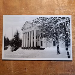 Vykort med motiv av Grängesberg Cassels Donation. Kortet har ett frimärke från Sverige.