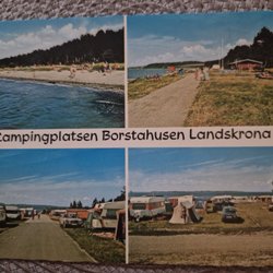 Ett vykort med bilder från Örnäsbadet i Åmål. Vykortet visar bilder av byggnader, campingplats och badplats.