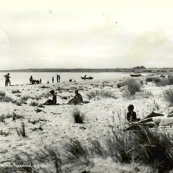 Ett vykort som visar Visby hamn med en båt i förgrunden. Vykortet är poststämplat 22.6.62.