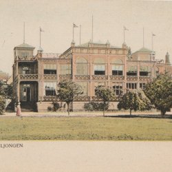 Ett vykort som föreställer Visby med Burmeisterska huset.