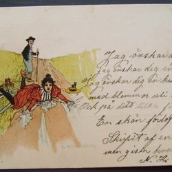 I bra postat skick. Lätt hörnstött. Format: ca 15 x 12 cm. Detta kort har en annan utformningän det jag sålde för någon månad sedan.