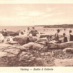 En samling vykort från Varberg. Motiven visar scener från stranden och badlivet. Vykorten är gamla och har charmiga detaljer.