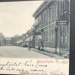 Vykort med motiv av Gottskärs Restaurant. På baksidan finns en stämpel från Sverige och text skriven för hand.