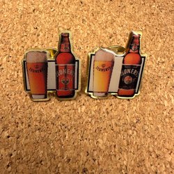 Ett par skedar i rostfritt STÅL 18-8. Skedarna har ett kronmotiv på handtaget och detaljerade mönster i skedbladen.
