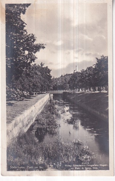 Fotografi från Söderhamn med motiv av en del av ån. Bilden är tagen av G. Sahlin år 1923 och utgiven av Söderhamns Fotografiska Magasin.