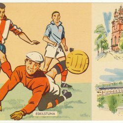 Ett julkort med en illustration av Malmö. På framsidan syns en julhälsning från Malmö. Baksidan innehåller en stämpel och ett frimärke.