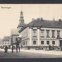 Örebro. Motiv från Engelbrekts Statyn på Stortorget. Äldre kort från tiden.