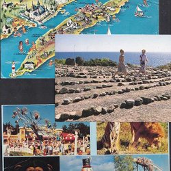 4 olika och en dubblett. Varierande format enl rubriken. Kort i denna storlek har sällan handlarna i sina lådor vid mässor och dylikt. Jag "slumpar" ut hela min samling stads- eller landskapsvis och enstaka mindre defekter kan förekomma utan att det beskrivs. De flesta är begagnade och frankerade. Antalet bestäms av portogränsen och jag kan ha flera kort (även större än A5) från denna region om intresse finns. Se bilder.