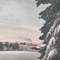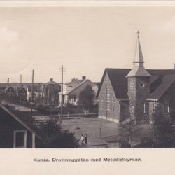 Stora byggnaden längst bak är Villa Solgården. Till höger är J.W. Johanssons speceriaffär. Närmast på bilden är Almnäs (telefonstationen)