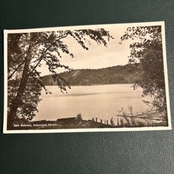 Ett vykort som visar Åsljunga. Adressetikett på baksidan.