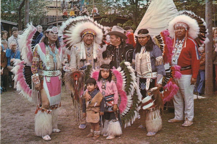 Fint oskrivet kort. Big Bengt omringas av äkta Apache- och Siouxindianer.
