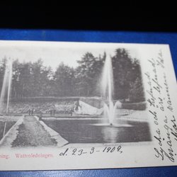 Ett gammalt brevkort. Motivet är Jönköping från stadsparken. Adressat är skrivet på kortet.