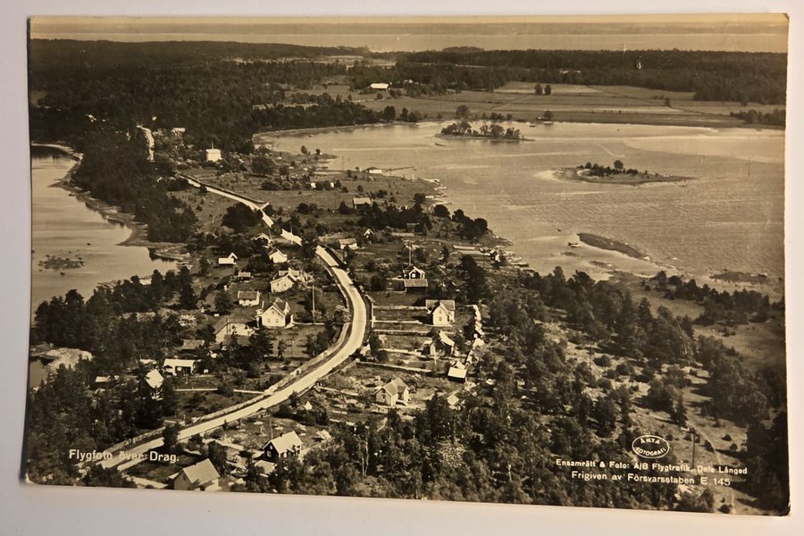 Ett flygfoto av Drag. Fotograf: A/B Flygtrafik, Dale Långed. Frigiven av Försvarsstaben E 145.
