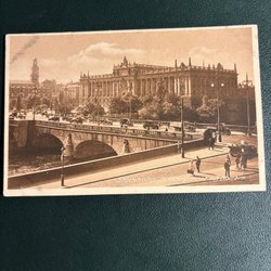 Vykort föreställande Vagn 71 på Djurgårdsvägen 1992. Fotot är taget av Leif Kleréus, Stockholmsavdelningen, Svenska Spårvägssällskapet. Kortstorlek A6.