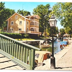 Ett vykort med text och bild. Motivet är Strängnäs från Tosterön.