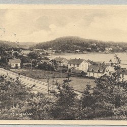 Ett vykort som visar Stenhammar. Flygfoto Östermans Aero A/B. Godkänd av Försvarsstaben. Svensk tillverkning. Köparen betalar frakten .