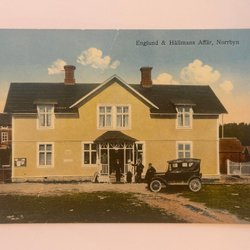 Kortet är skrivet med postgånget, men frimärket saknas.