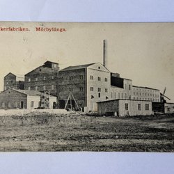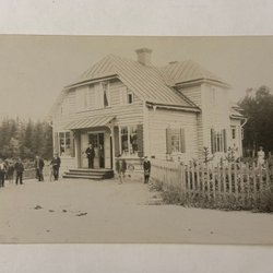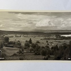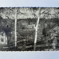 Kortet är skrivet och postgånget. Ett litet fläck på framsidan.