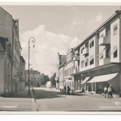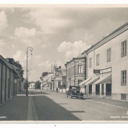 Köping Lilla Torget Butiker ex El-affären Färg Gammal bil Folk t v ca 1940 KV 9