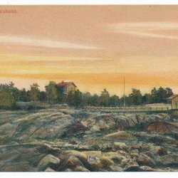 Gideå Utsiket över Gissjön Ett par hus Handkolorerat Örnsköldsvik KV 8