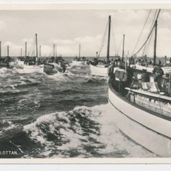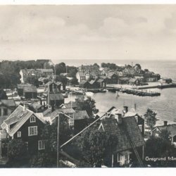 Borgholm Inre hamnen Kalmarsundfärja fiskebåtar Varmbadhuset t v pg 1954 KV 10