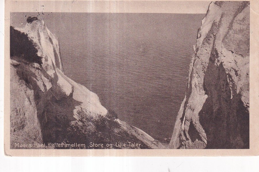 Ett vykort föreställande Moens Klint, Kloften imellem Store og Lille Taler.