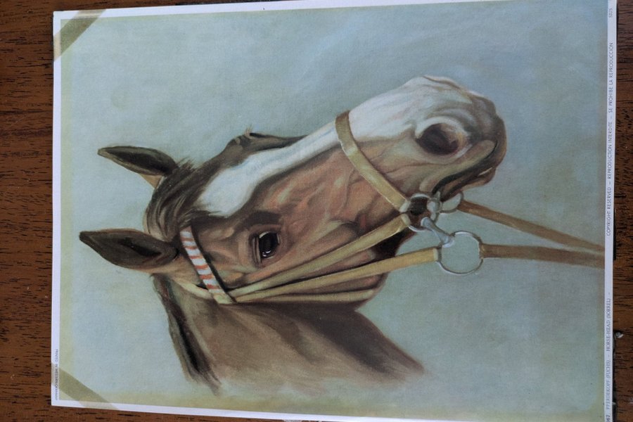 Plansch med motiv av ett hästhuvud.