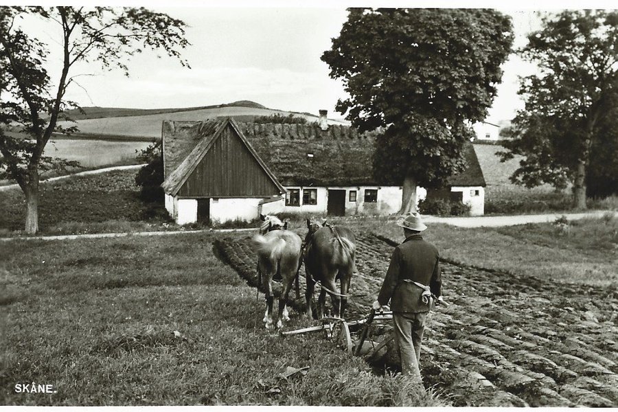 Hästar drar plogen i Skåne.