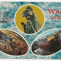 Ett vykort med ett motiv av ett fartyg. Texten "Deutschland" syns på fartyget. Vykortet är poststämplat.