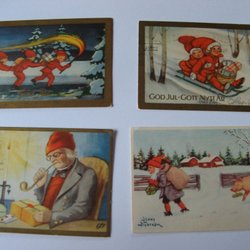 Ett julkort med motiv av Harald Wiberg. Tryckt på miljövänlig kartong. Poststämplat 1989.