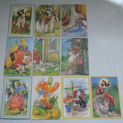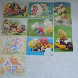 Äldre påskkort i form av en kyckling. Det finns en liten hälsning skriven på sidan. Se bilder. Mått: C.a: 11 x 7 cm. Katt finns i hemmet.