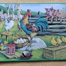 Påskkort med barn och höns. Kortet har texten "Glad Påsk" och en stämpel från 1907.