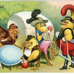 Äldre små vykort med påskmotiv. Korten är i färg och föreställer barn och djur i olika påskmiljöer. Vykorten är oskrivna. Ca 10,5 x 7 cm.