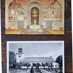 Ett vykort med motiv av Lomma Församlingshems klockstapel. Vykortet är poststämplat 1962.