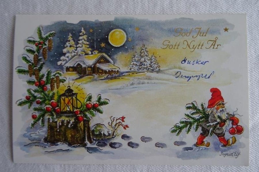 Julkort sign Ingrid Elf