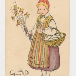 Stoopendaal Påskkort Småkort Blond flicka matar höns i hage pg 192? KV8 9