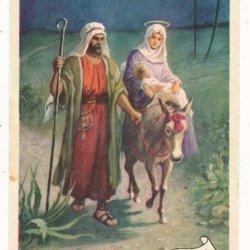 Curt Nyström Oskrivet julkort Heliga familjen i skogen med lykta KV 9 10