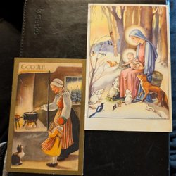 G.A 4 st kort. Flicka, smällkaramell, Lykta, Prinsessa i vagn