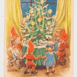 Erik Forsman Julkort Småkort Tomtar Bock drar kälke m gran Paketlåda Helgmärke *