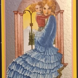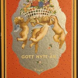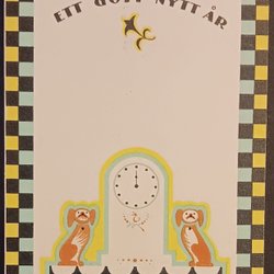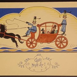 Ett gammalt vykort med motiv av en figur i tidstypisk dräkt som håller två brev. Texten "Gott Nytt År" är tryckt på kortet. Vykortet är utgivet av Axel Eliassons Konstförlag, Stockholm. Nummer 1620.