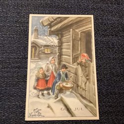 Tomte med Pengasäckar på kärran, reliefkort